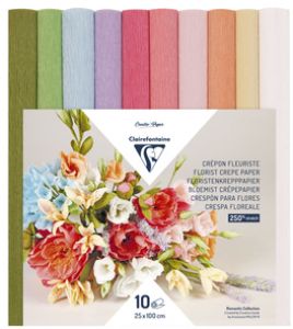 The florist's crepe paper is ideal for making paper flowers. Its high elasticity (250%) and its heavy weight (equivalent to 160gsm) makes it perfectly malleable. It provides volume and texture to creations for a realistic and natural effect. A pack of 10 rolls of florist's crepe paper 25x100cm.
