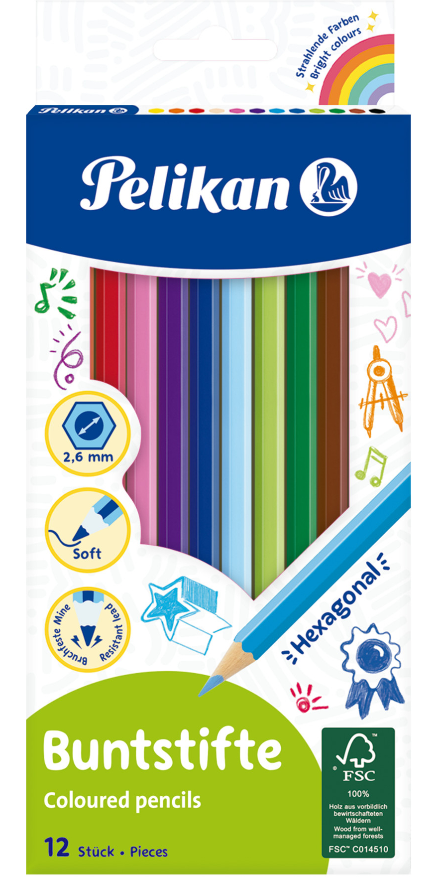 Colored pencils hexagonal 3mm lead Pelikan 12 Colors