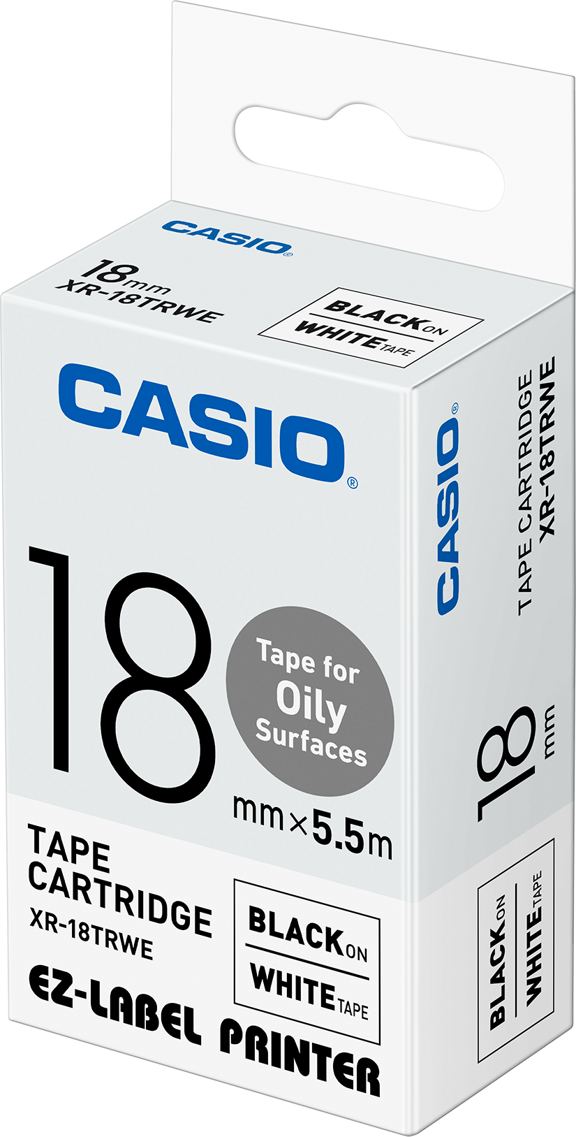 Label Maker Cartridge Label, Black/White for Oily Surfaces Casio 5.5m 18mm