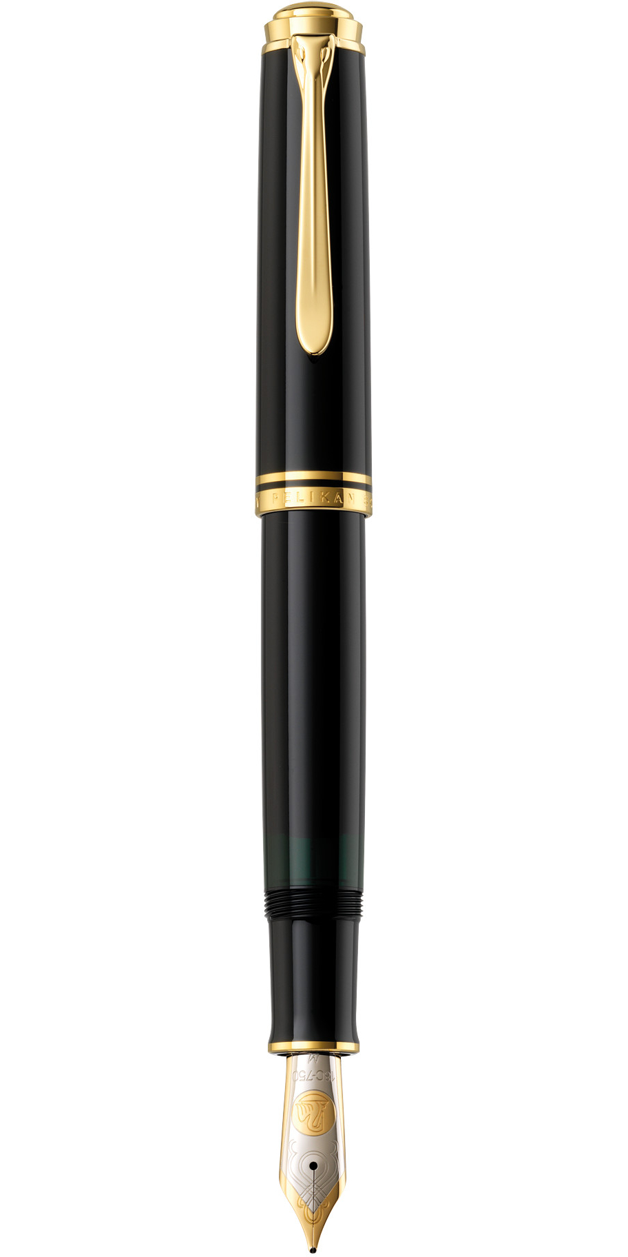 Fountain pen with piston filling mechanism ; 18-carat bi-color gold nib with rhodium trim with medium nib width ; 24-carat gold-plated highlights ; Individual striped cellulose acetate material ; Made in Germany