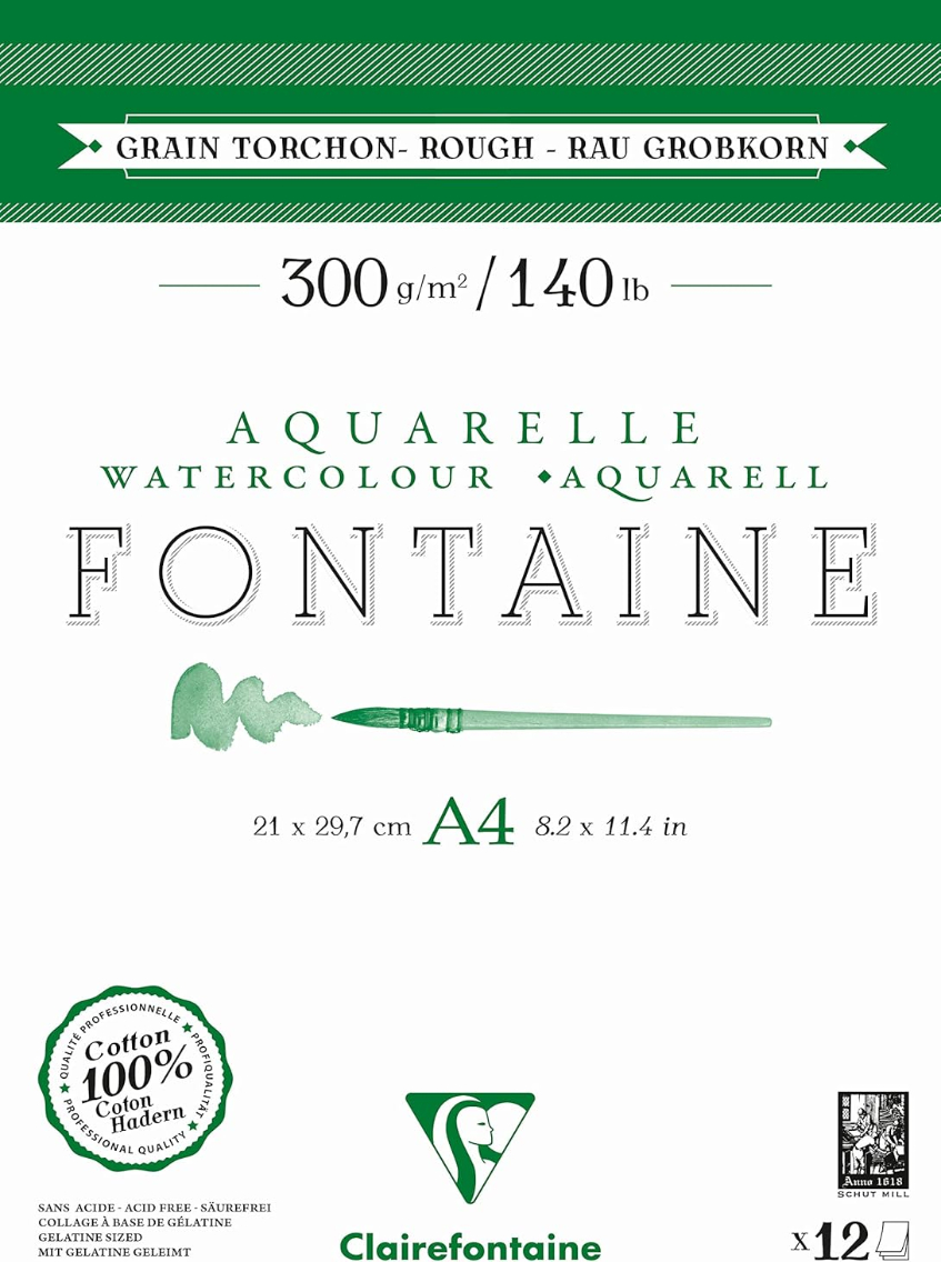 Fontaine Pad A4 Rough Clairefontaine 300gsm A4 12 Sheets
