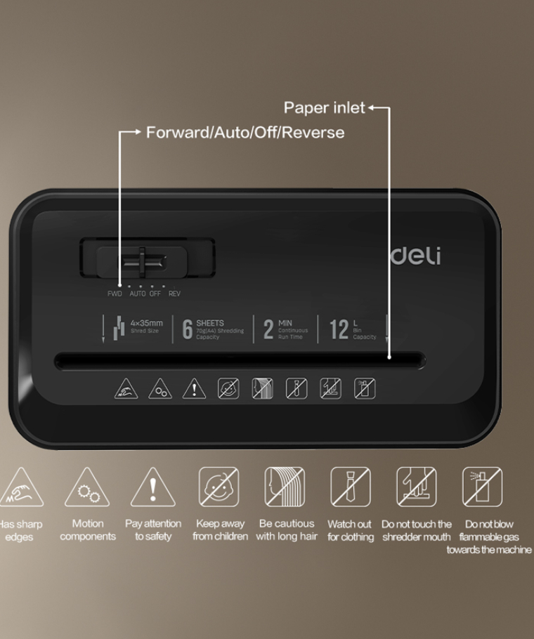 Shredder 5 sheets;Shredding Time: 2min Deli