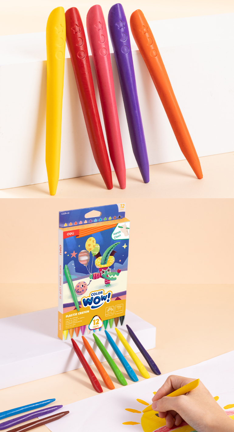 Plastic Wax Crayon Deli 12 Colors