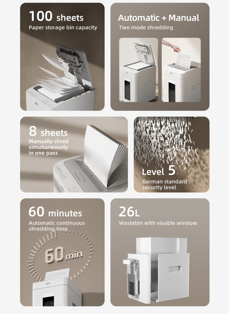 Continuous shredding time: Manual 30min, automatic 60min