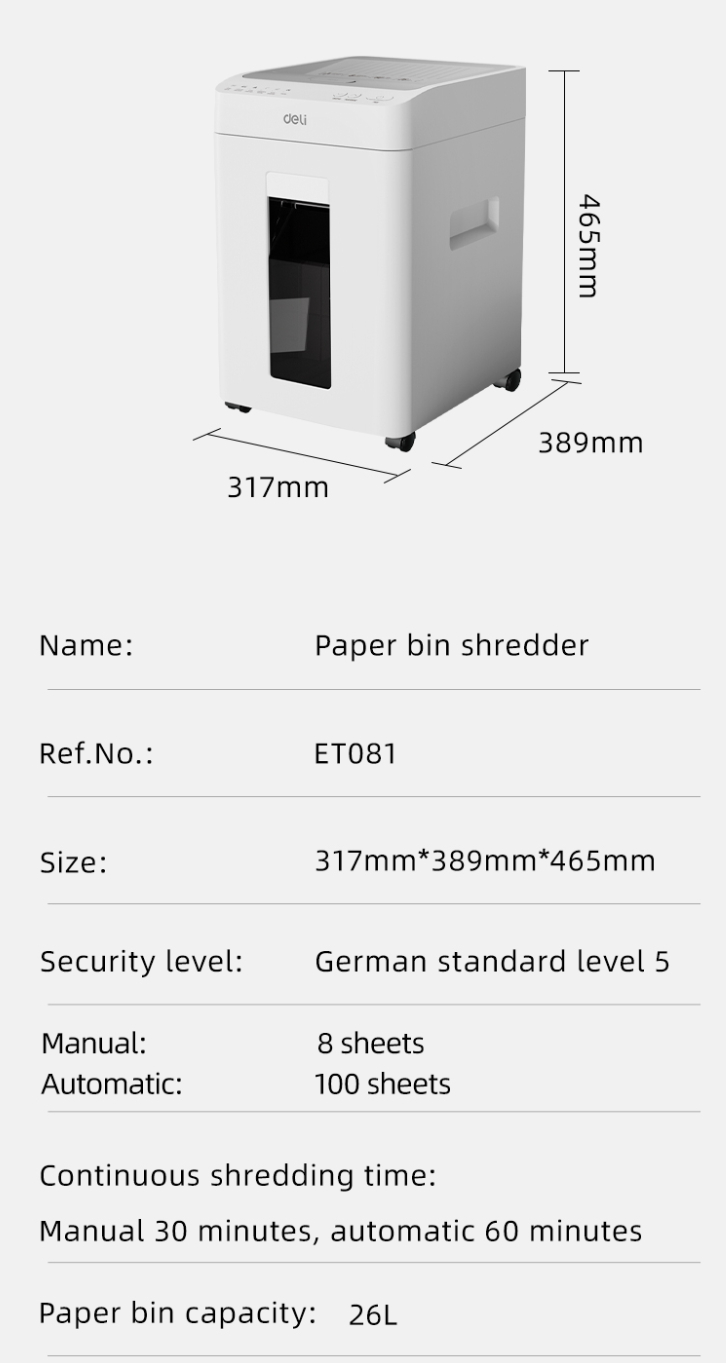 ET081: Paper shredder Deli 317x389x465mm