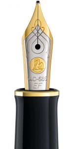 Features: Fountain pen with piston filling mechanism ; 14-carat bi-color gold nib with rhodium trim with fine nib width ; 24-carat gold-plated highlights ; Individual striped cellulose acetate material ; Made in Germany