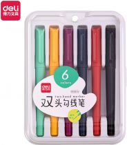 ორმხრივი სახატავი მარკერები 1.2მმ/0.5მმ Deli 6 ფერი