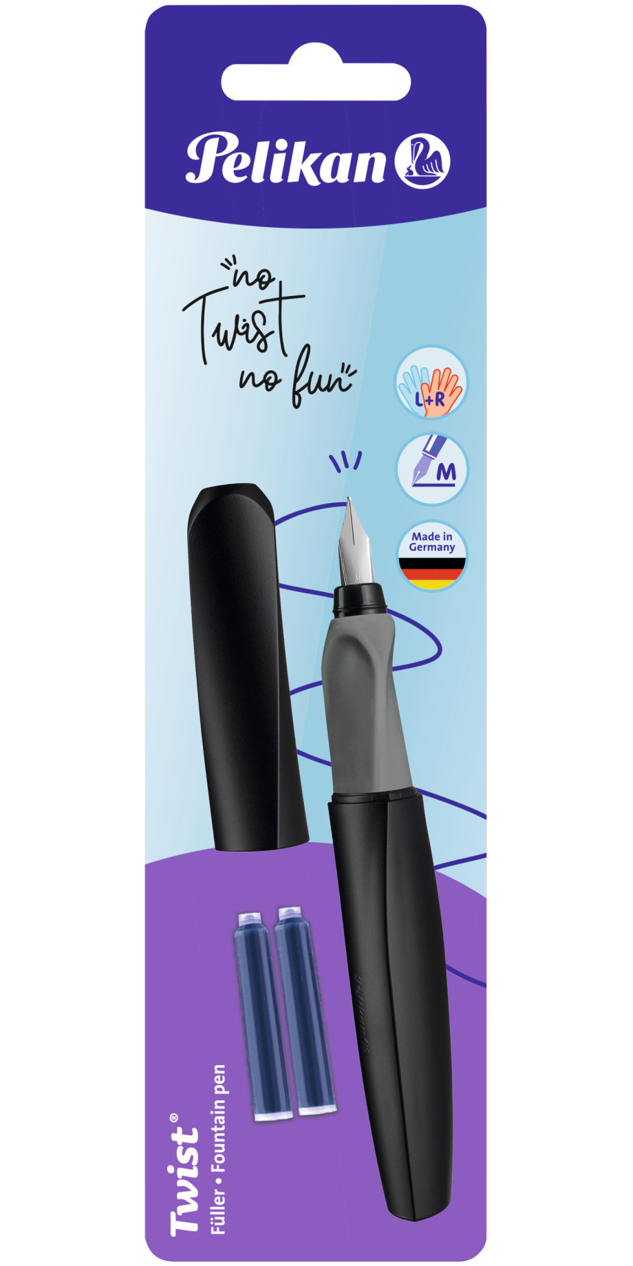 ავტოკალამი Twist M წვერი + 1 კარტრიჯი, Black, ბლისტერი Pelikan - შავი