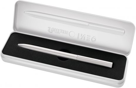 Ballpoint pen with twist mechanism; Purist clipless design; Pearl anodized upper and lower part; Slim shape; Equipped with replaceable king-size refill; Blue colored and in accordance with ISO 12757-2 document-proof ink