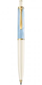 Push-action ballpoint pen; With gold-plated decorative elements; With pearl effect for velvety color impression; With typical Pelikan beak-like clip; Replaceable refill; Included refill in black; Document-proof; Color: Pastel-Blue; Made in Germany