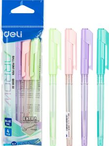ბურთულიანი კალმების სეტი Deli 0.7მმ წვერით 4 ცალი
