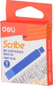 ავტოკალმის მელნის კარტრიჯი ღია ლურჯი Deli 6 ცალი