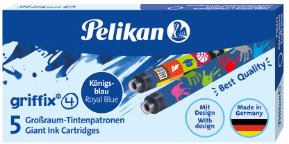გიგანტური მელნის კარტრიჯი griffix® 4 -სთვის, წაშლადი Pelikan 5 ცალი