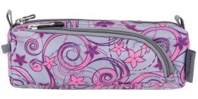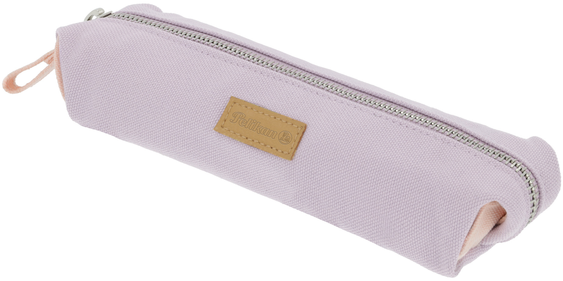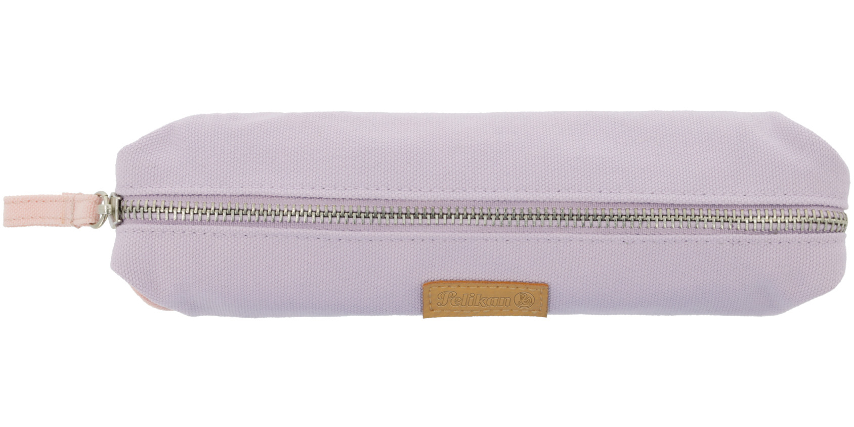 Material: Polyester RPET; 1 spacious main compartment; fancy shape, folded at the side; Zipper silver; Inner lining grey; perfect companion for school; University; work or leisure; handy; Dimensions: 24 x 8 x 6 c; easy transport; Colour: Lavender/Apricot