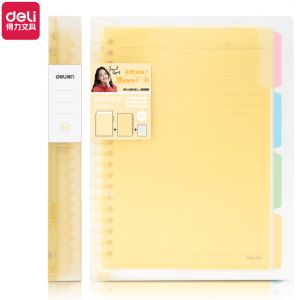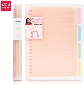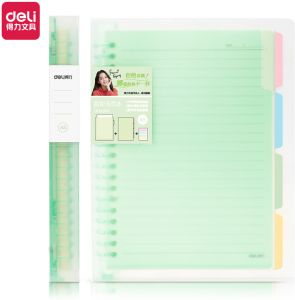 ბლოკნოტი პლასტიკური ყდით ზამბარაზე დივაიდერით, ხაზი Deli 143x210მმ A5 60 ფურცელი (ფერი შეიძლება განსხვავდებოდეს)