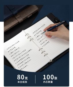 ბლოკნოტი ტყავის ყდით, მეტალის სამაგრი მექანიზმით, ხაზი Deli 170x230მმ A5 100 ფურცელი