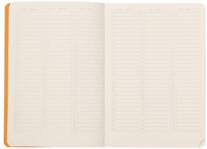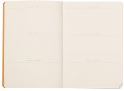 ბლოკნოტი ელასტიური ტყავის ყდით, დასათარიღებელი და ხაზოვანი შიგთავსით Rhodia 14.8x21სმ 90გ/მ² A5 64 ფურცელი