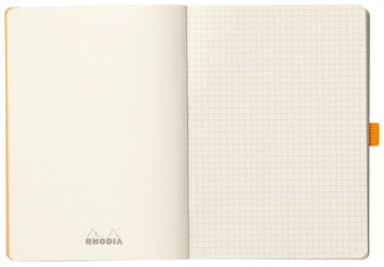- Italian leatherette glued spine with embossed Rhodia logo