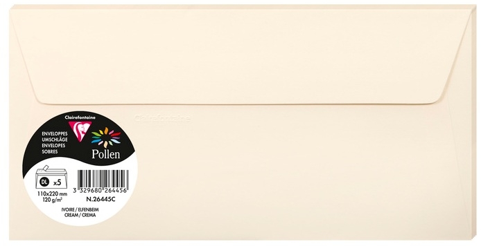 კონვერტი დიპლომატიური Clairefontaine 110x220მმ 120გ/მ² 5 ცალი