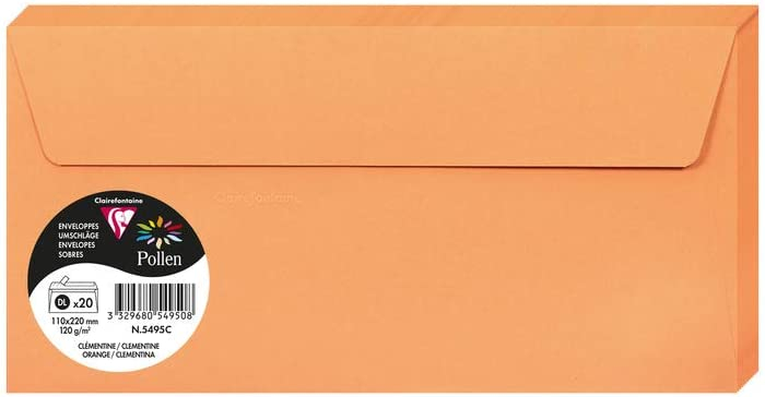კონვერტი დიპლომატიური Orange Clairefontaine 110x220მმ 120გ/მ² 20 ცალი