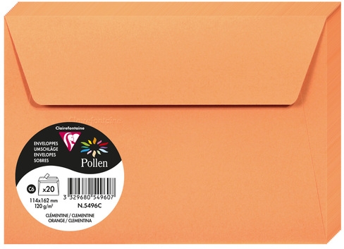 კონვერტი დიპლომატიური Orange Clairefontaine 110x220მმ 120გ/მ² 20 ცალი