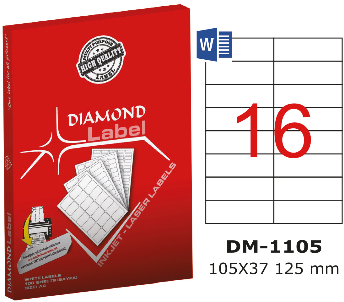 ლეიბლი 16 ნაჭრიანი DIAMOND 105x37მმ A4 100 ფურცელი