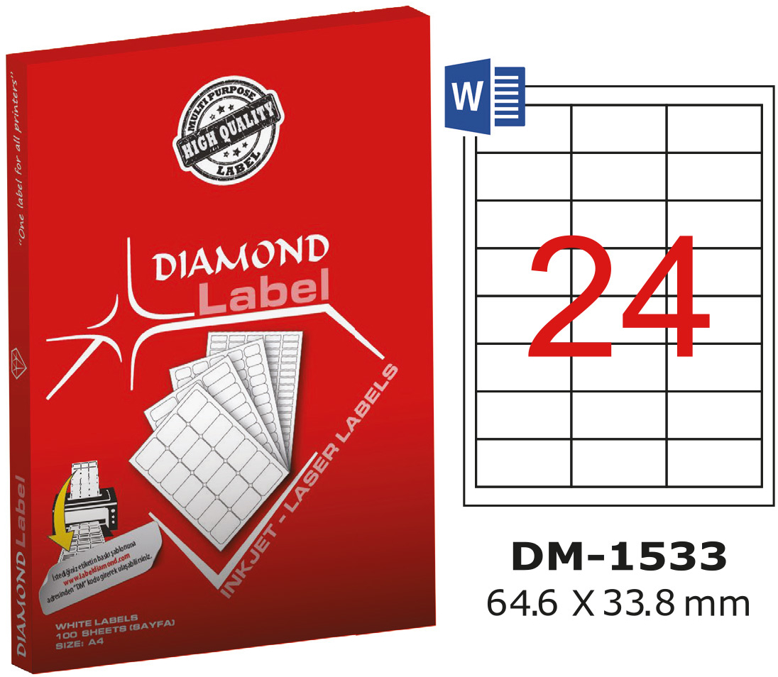 ლეიბლი 24 ნაჭრიანი DIAMOND 64.6x33.8მმ A4 100 ფურცელი