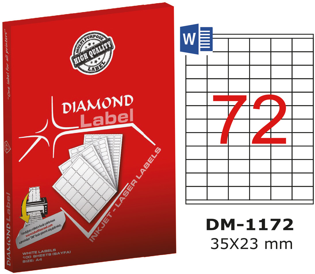 ლეიბლი 72 ნაჭრიანი DIAMOND 35x23მმ A4 100 ფურცელი