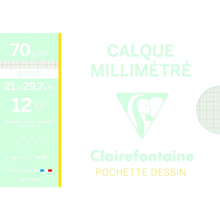 მილიმეტრული ქაღალდი Clairefontaine 21x29.7სმ 70გ/მ² 12 ფურცელი