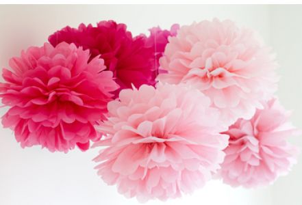 აბრეშუმის 3 დეკორატიული პომპონი; (30სმ.-1ც; 40სმ.-2ც.) ვარდისფერი Clairefontaine