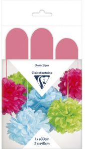 აბრეშუმის 3 დეკორატიული პომპონი; (30სმ.-1ც; 40სმ.-2ც.) ცისფერი ფერის Clairefontaine