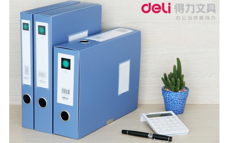 სასაბუთე ყუთი პლასტიკური 75მმ Deli A4 (ფერი შეიძლება განსხვავდებოდეს)