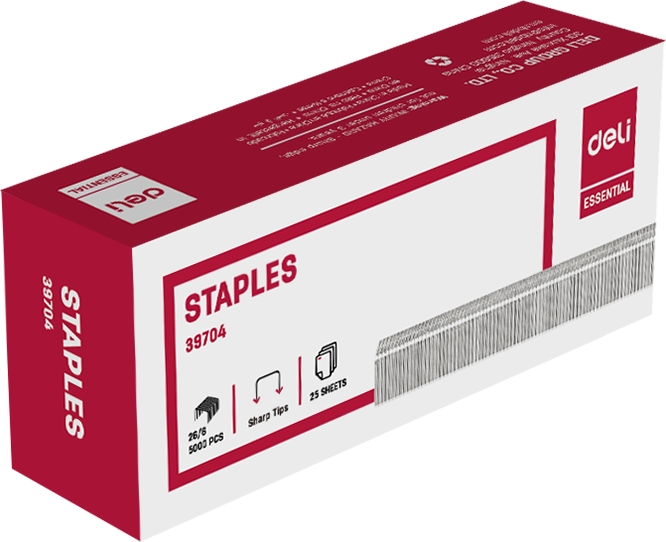 სტეპლერის ტყვია 26/6, 25ფურცლის ასაკინძად Deli 5000 ცალი