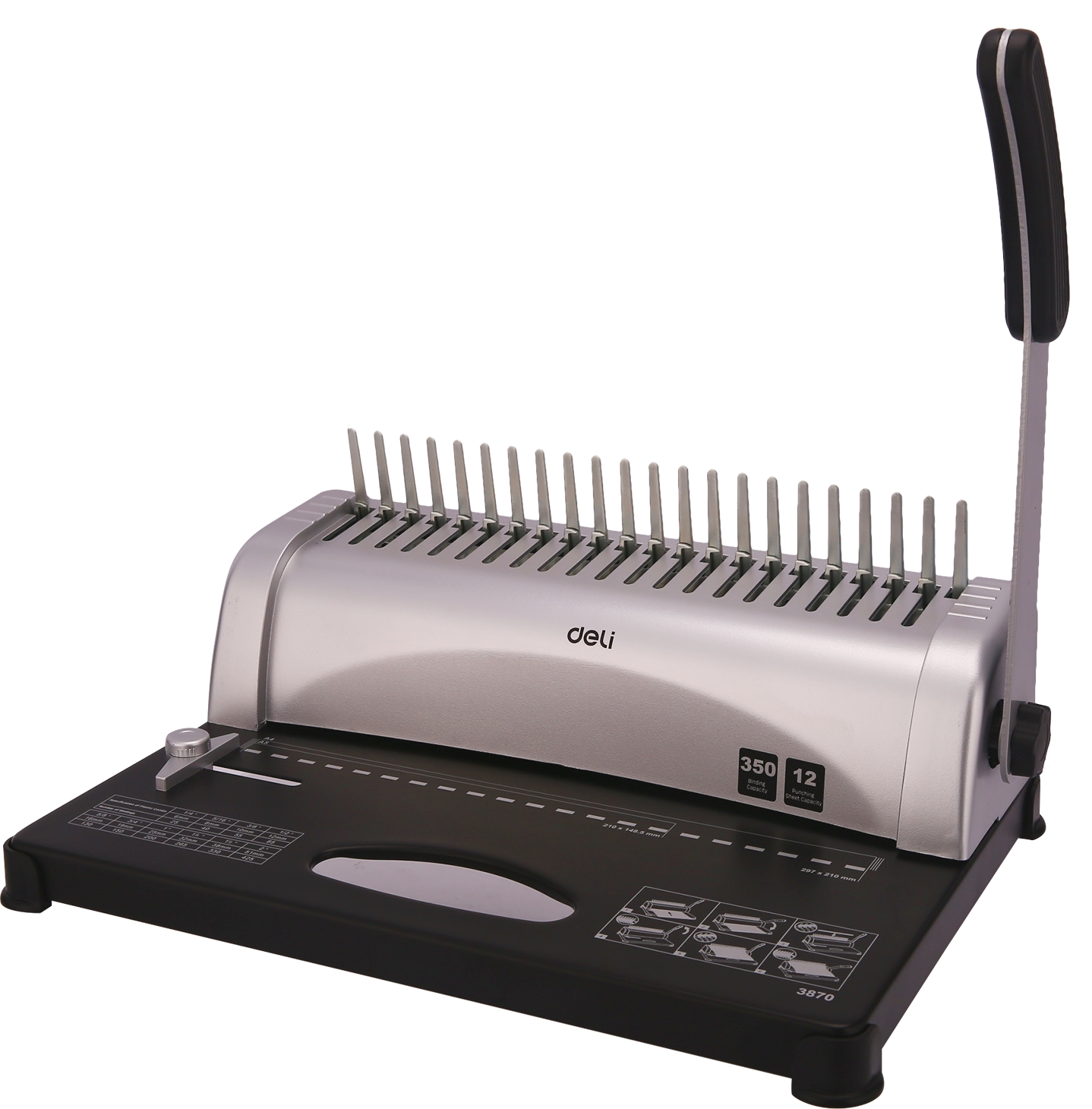 ასაკინძი მანქანა; ჭრის რაოდენობა 12 ფურცელი; აკინძვა 350 ფურცელი Deli