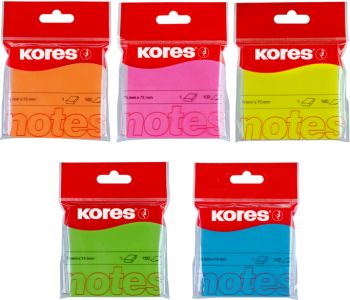 ჩასანიშნი წებოვანი ნეონის ფერები Kores 75x75მმ 100 ფურცელი