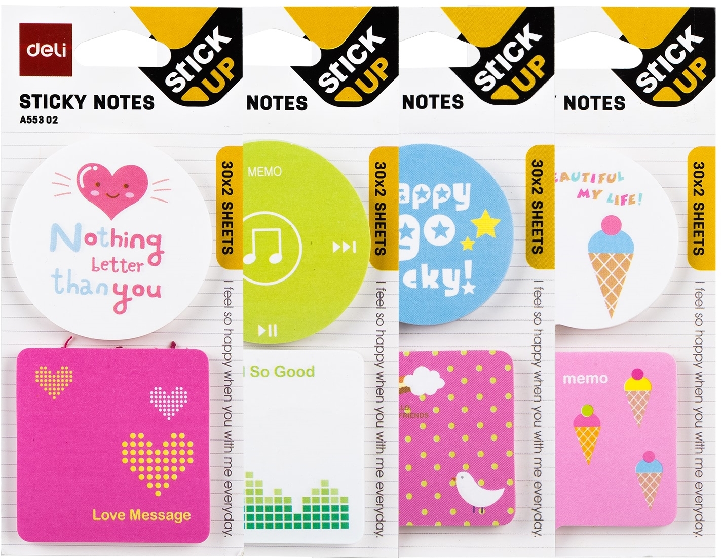 წებოვანი ჩასანიშნი ფურცლები, სახვადასხვა ფორმის Deli 80 ფურცელი