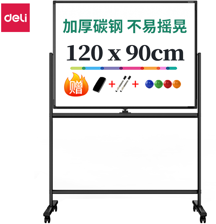 თეთრი მაგნიტური დაფა სადგამით, ორმხრივი Deli 120x90სმ