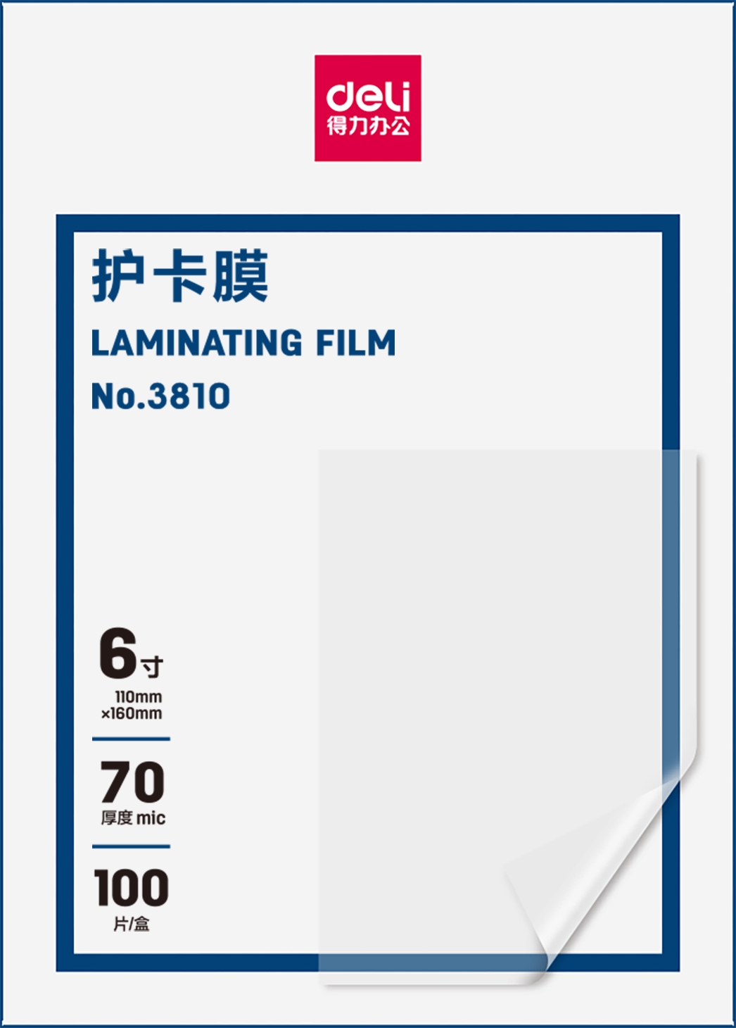 ლამინატორის ფირი 70მკრ 100 ცალიანი შეკვრა Deli 110x160მმ