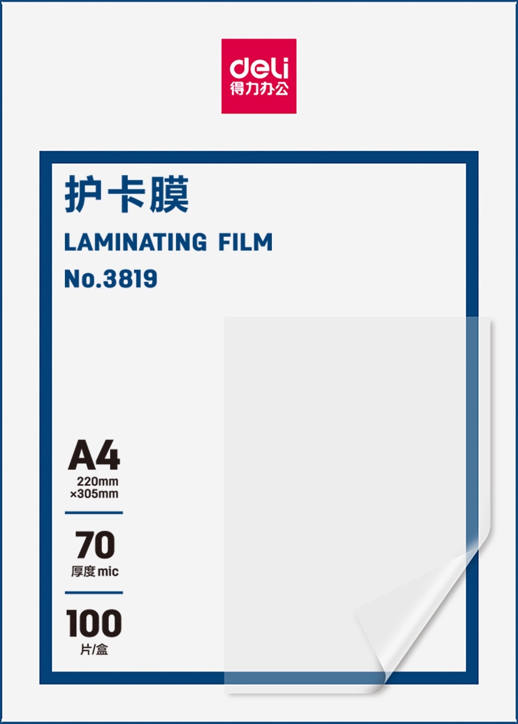 ლამინატორის ფირი A4 70მკრ100 ცალიანი შეკვრა Deli