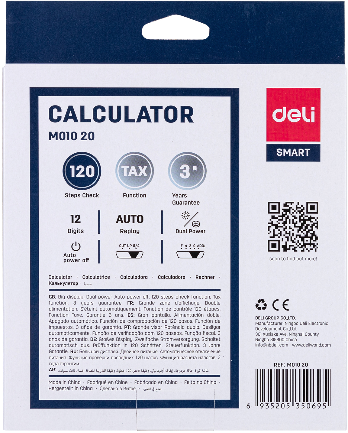 კალკულატორი 12 თანრიგიანი Deli 182x130x35მმ