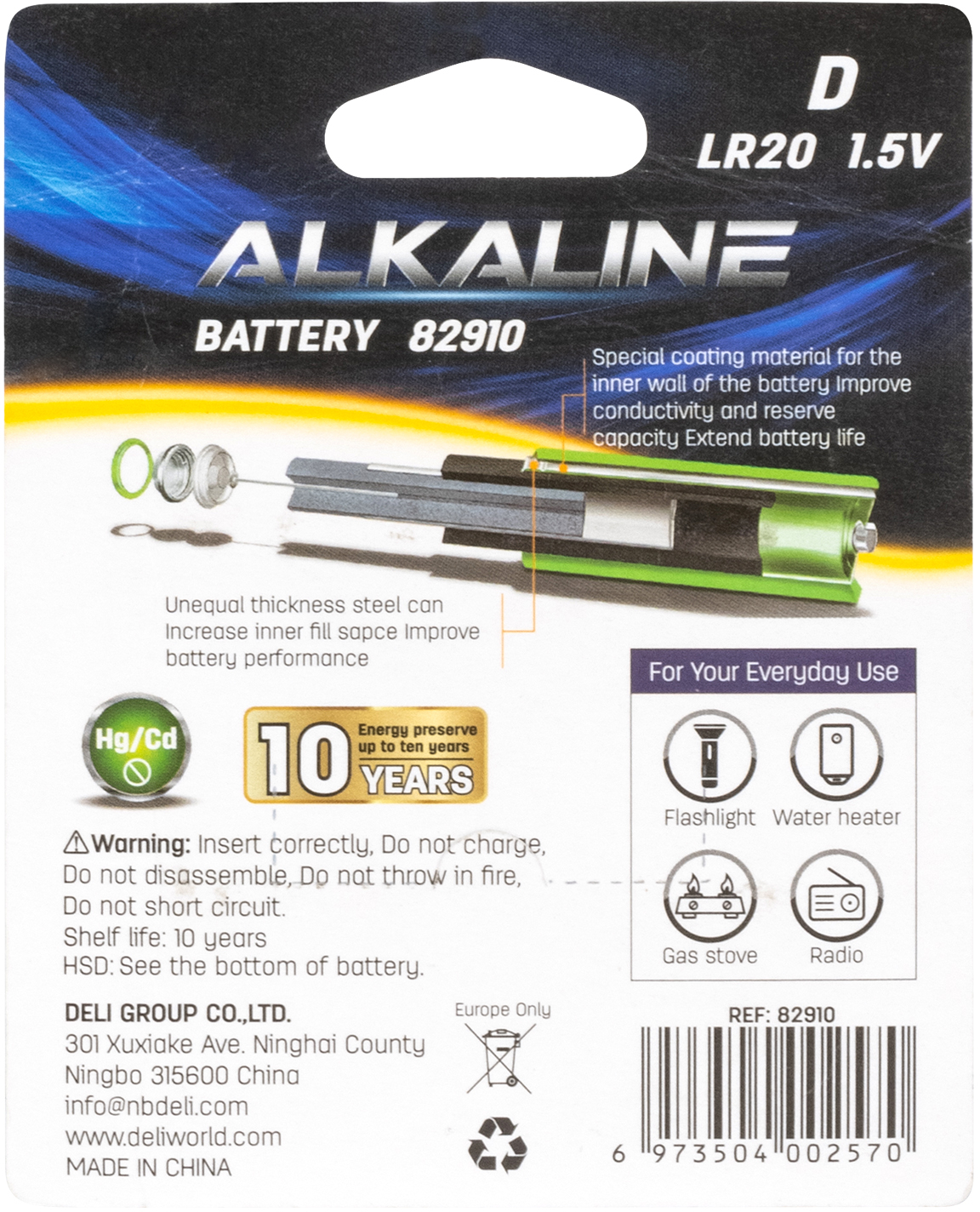 მძლავრი ელემენტი 6F22/9V Deli 1 ცალი