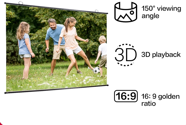 საპროექციო ეკრანი Deli 186x104.5x1სმ