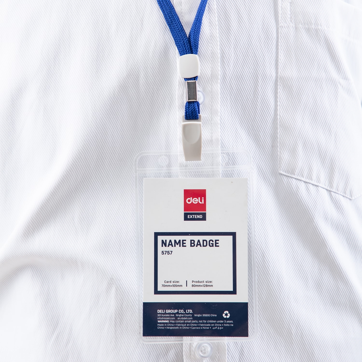 ბეიჯი ზონრით Deli 113x68მმ (ფერი შეიძლება განსხვავდებოდეს)