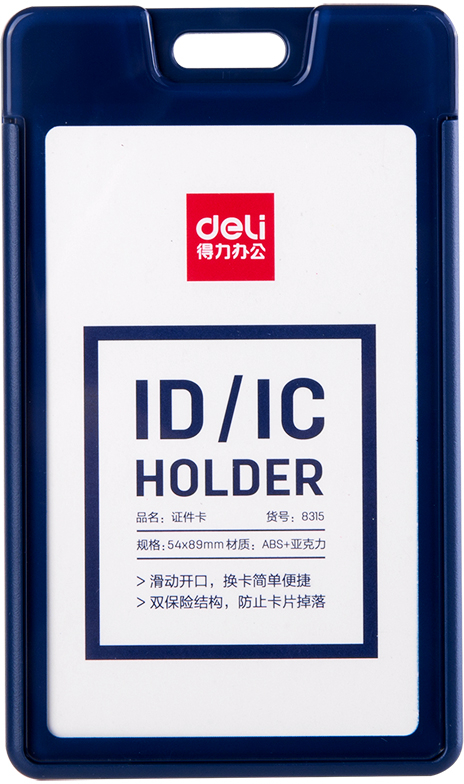 პლასტიკური ბეიჯი, გარე ზომა 118x84მმ, შიდა ზომა 106x68მმ Deli