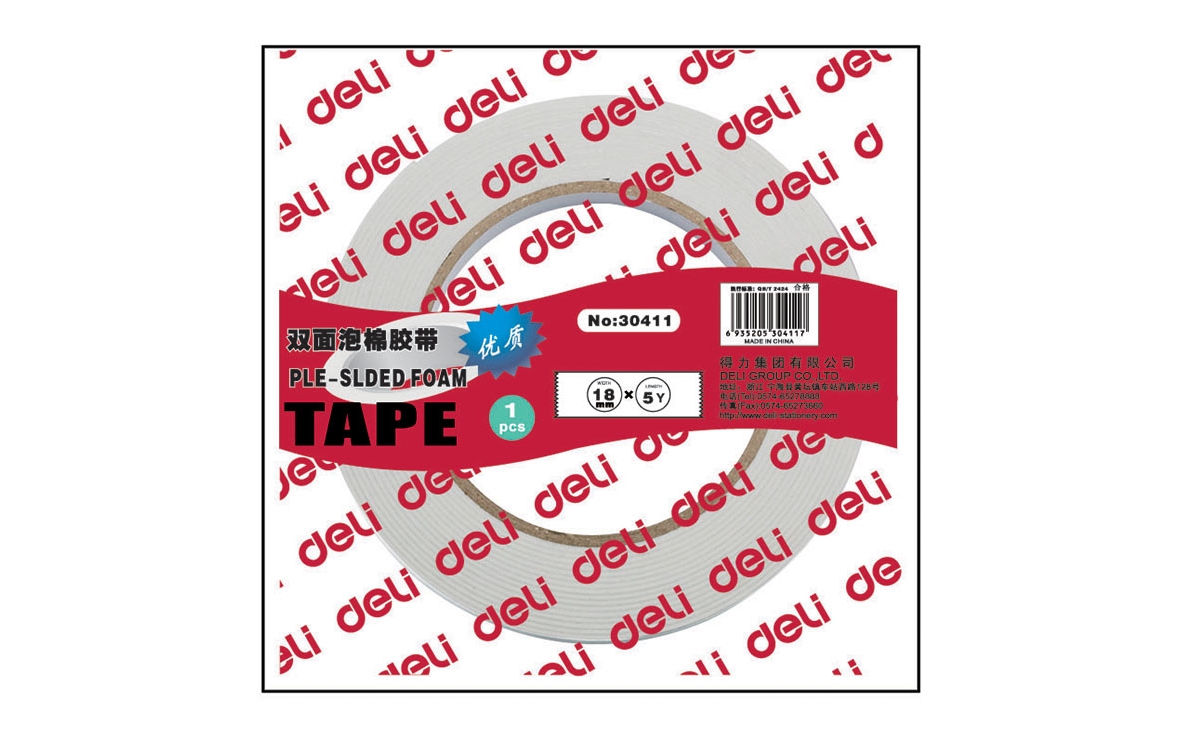 სკოჩი ღრუბელი ორმხრივი - სამონტაჟო Deli 4.6მ 18მმ