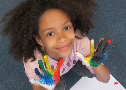თითით დასახატი საღებავი ინტენსიური ფერებით.