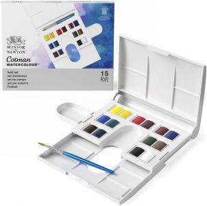 NEW COTMAN POCKET PLUS აკვარელის ნაკრები პალიტრით და ფუნჯით Winsor & Newton 12 ფერი