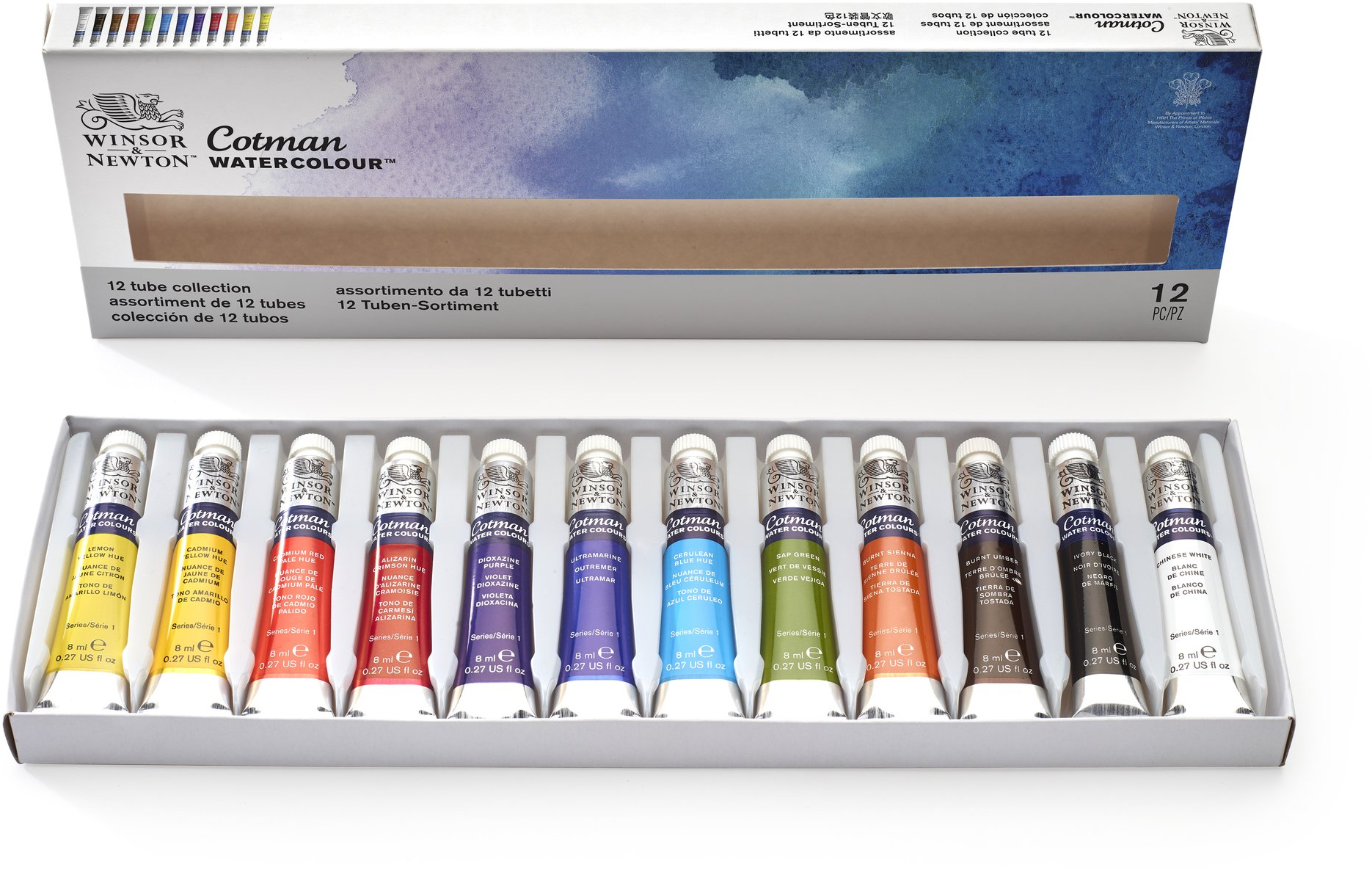 COTMAN აკვარელის ნაკრები Winsor & Newton 8მლ 12 ფერი