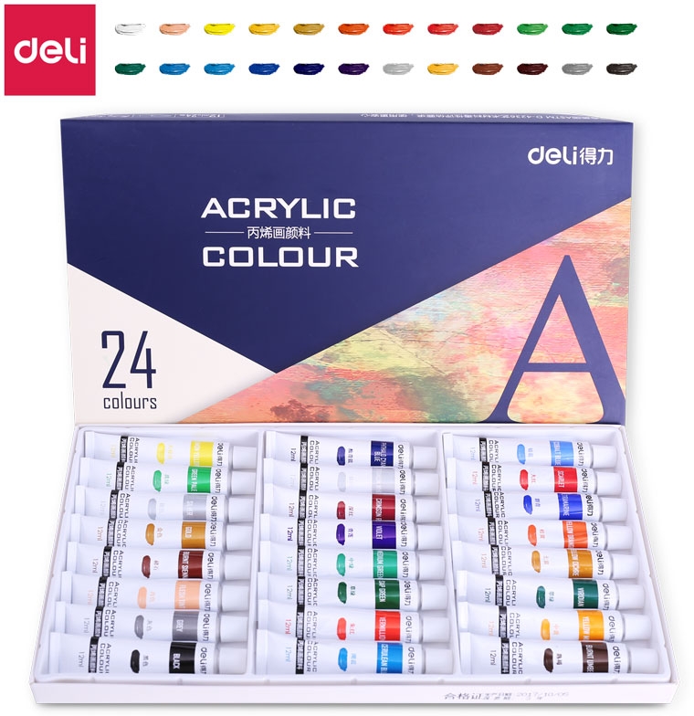 აკრილის საღებავები Deli 12მლ 24 ფერი