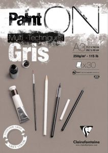 ნაცრისფერი სახატავი ქაღალდი მულტი-ტექნიკისთვის Clairefontaine 250გ/მ² A3 30 ფურცელი